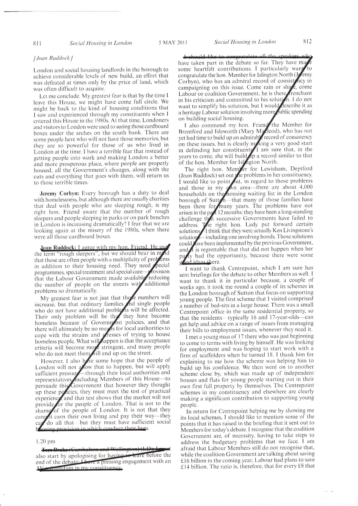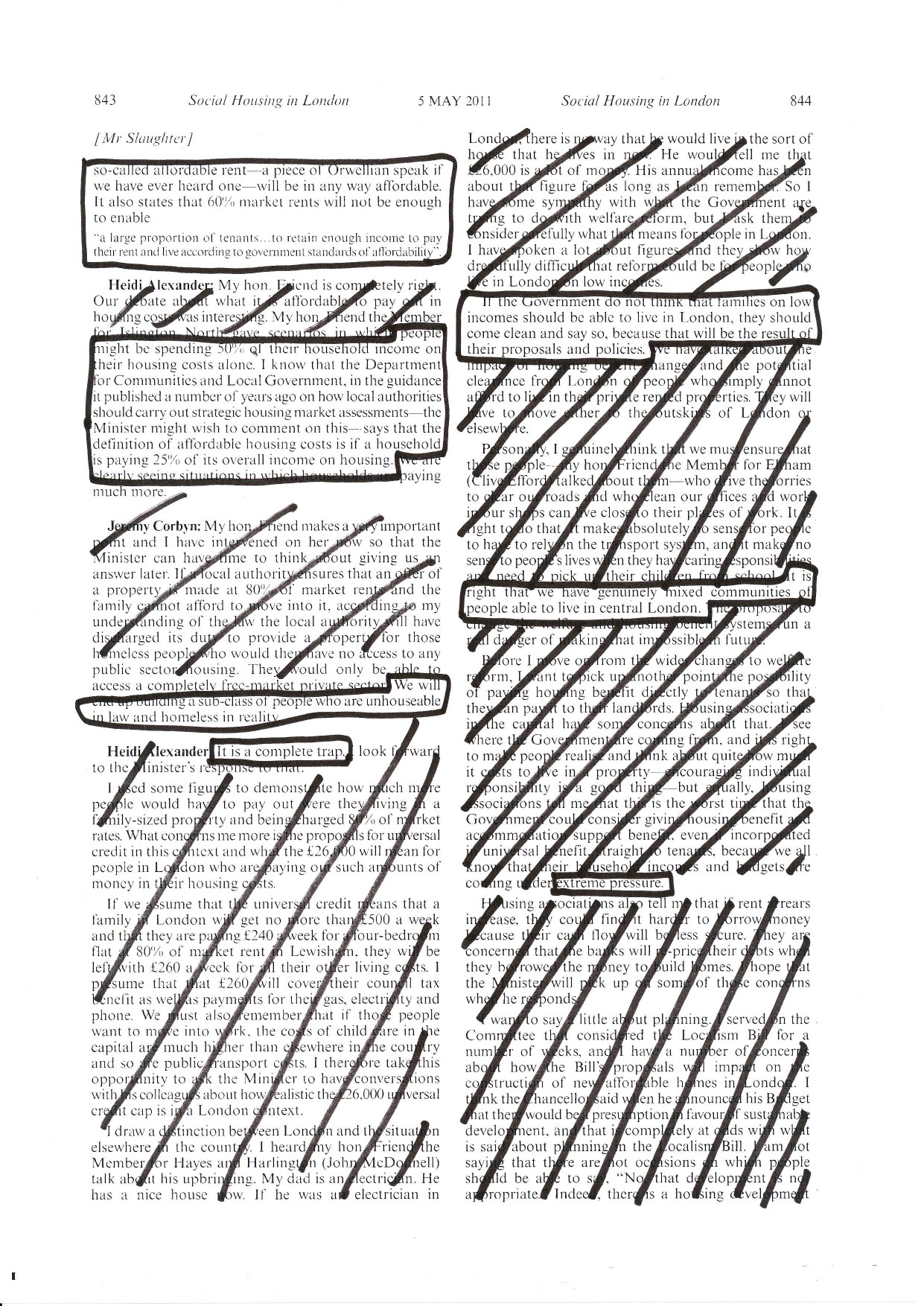 I gave copies of the full, redacted transcript back to each resident and posted them anonymously to the twenty MPs who spoke in the debate. They will have seen their own words transformed by every shroud, strike-through and slash of text. If only residents had such control over their own lives. With every stroke of the pen, the power over them would collapse before their eyes.