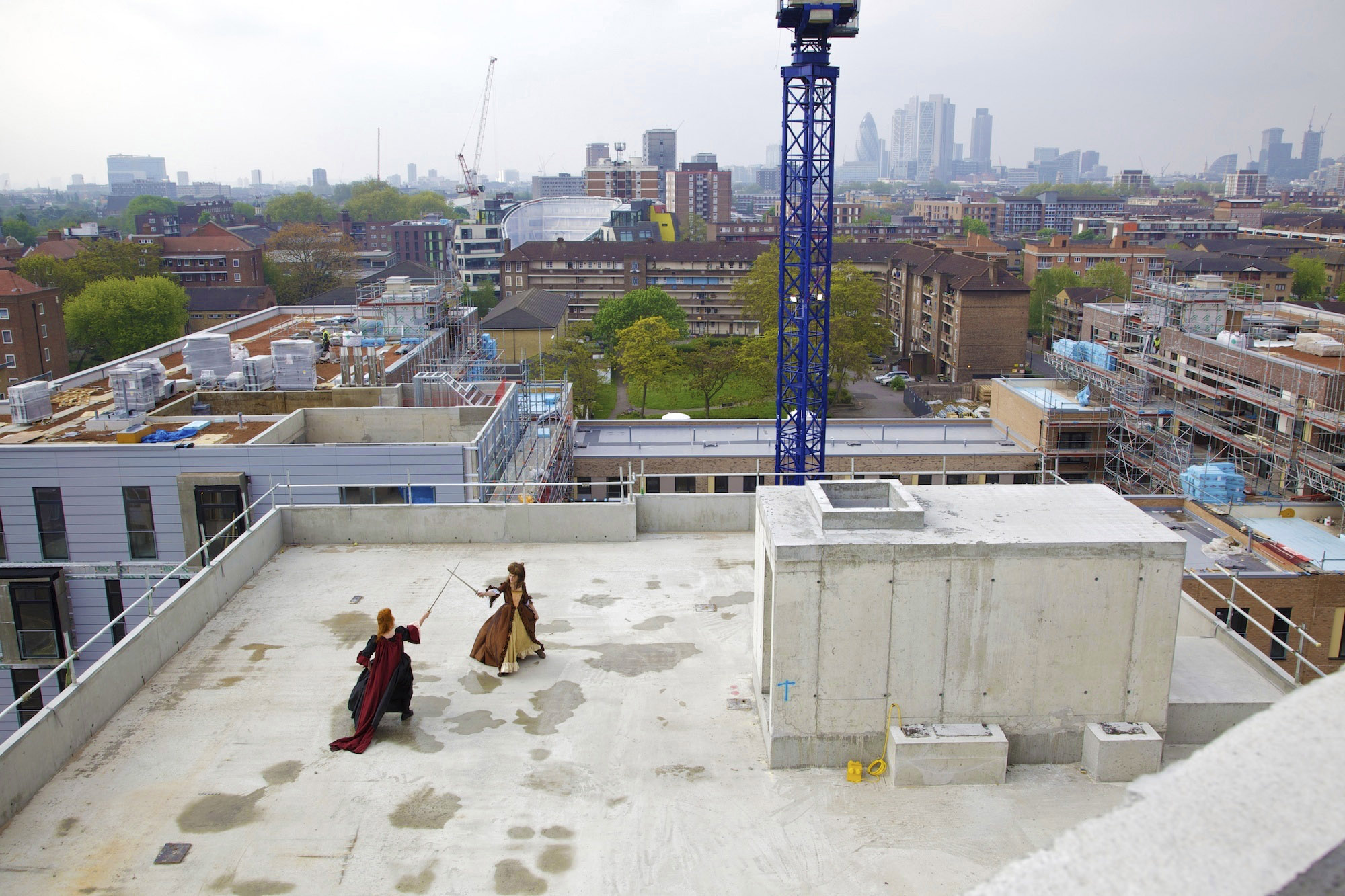 With the material we shot, Estate, a Reverie could easily have been a more expository film; the backstory of tireless campaigning; the bigger story of social housing in Britain, but it is all the more powerful for simply foregrounding residents. The focus is clear throughout – the people are the story of the estate. There are no affectations. We bear witness to how they live, often with hardship, often a result of policy that overlooks them but a community of neighbours who do not. It is political in a quiet and most personal way. Andrea’s decision to make the film solely about residents is a generous act, giving them the time and space in process and in public that is not usually afforded to them. To me, the film is not only about the estate it is the estate. Documentary filmmaking, as Andrea has explained to me and her neighbours, is a precious medium that can build its argument through enduring encounter – offering time, the duration of shared experience, and space, as both its subject in the abstract and the actual material environments of its content, as active components. The film is the time and space of the estate – the long years of limbo in too-small flats and the moment of sudden possibility in the communal courtyard at the end; a common ground for co-existence and solidarity when residents are finally given freedom for creation; and a public space, increasingly rare in this city, open and vulnerable into which all can walk.
