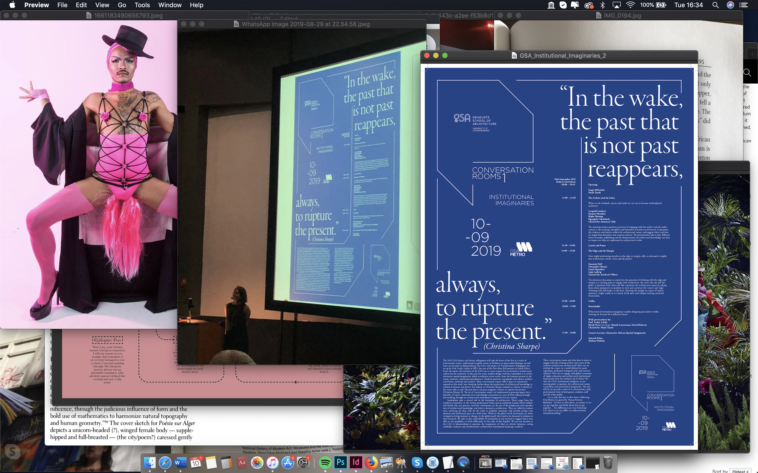 Letting the day wash over us, we’d like to present a wake of sorts too - the wash of the day, moments from the GSA and in which we found resonance drawn from elsewhere, which suggest how we might perform wake-work in architecture today and, further, how this wake-work might suggest new institutional imaginaries, or create them in the process. How can we work in a way which is both cognisant of violence and crafts an alternative?
