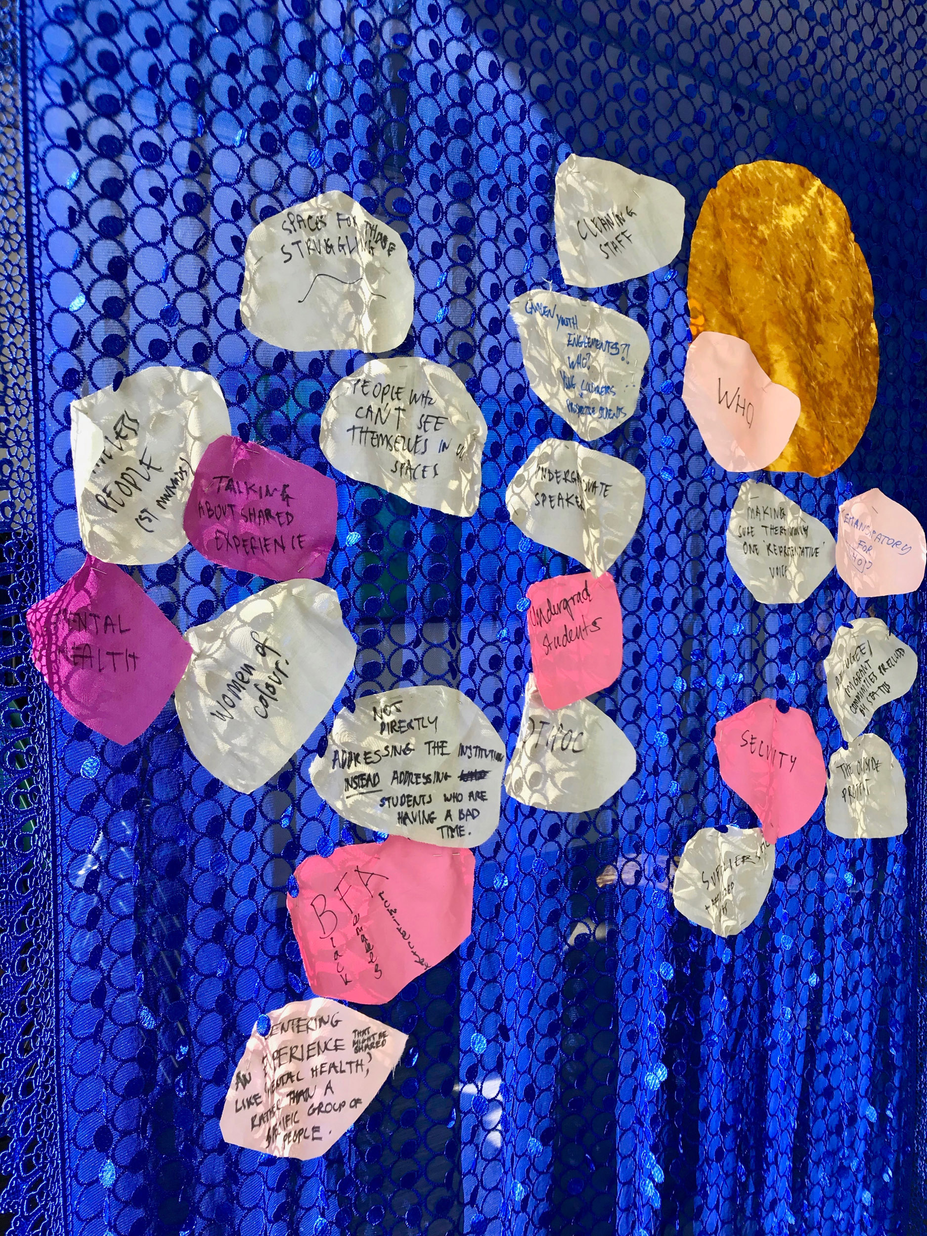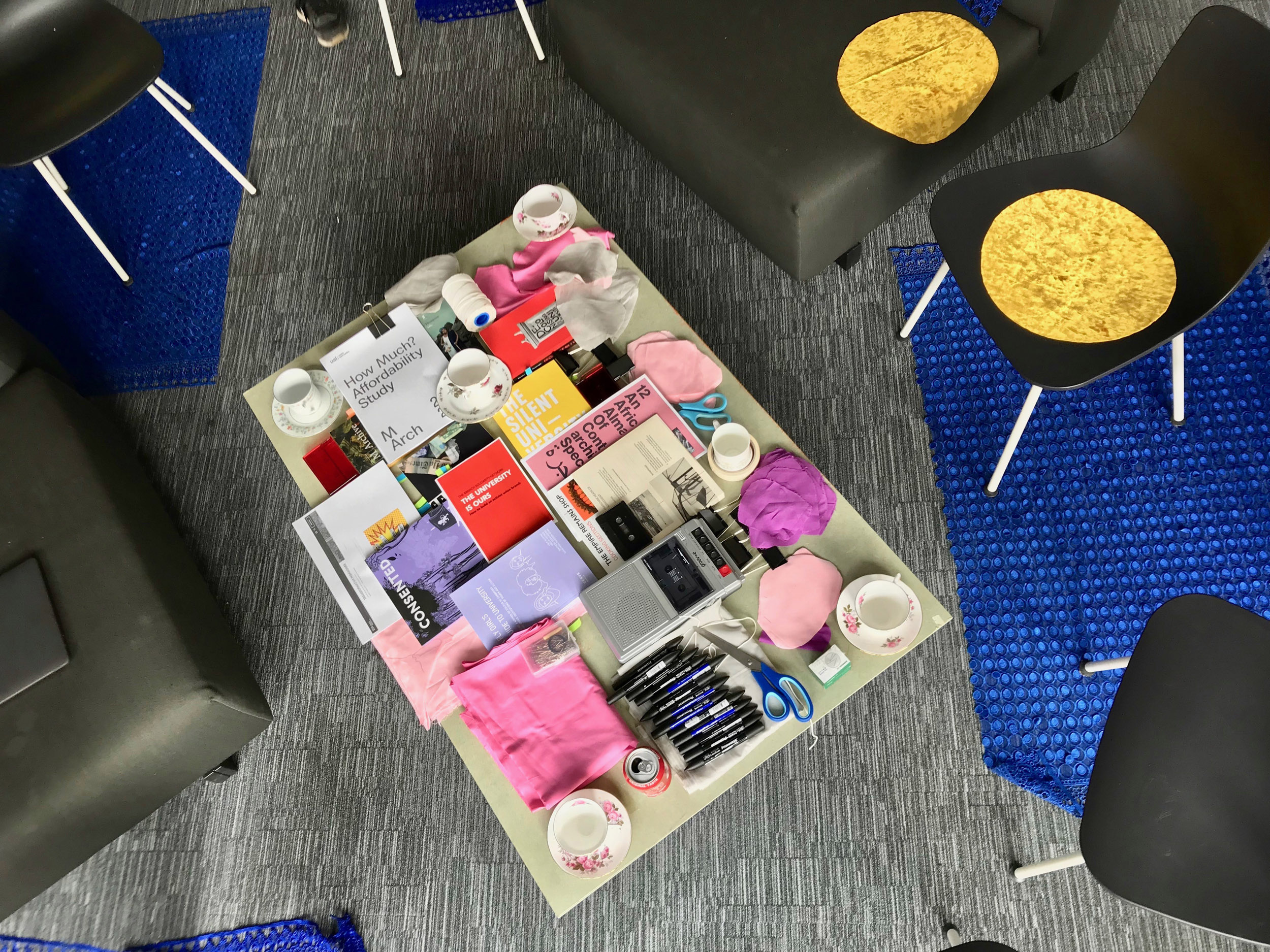 In our next phase of work, we investigate the spatial representations, practices and experiences of hostile environments in higher education, including but also going beyond the widely discredited but prevailing government policy of hostility towards people deemed to be undesirable immigrants to the UK. We intended for our investigations to take the form of a week long ‘public hearing’ in October/November 2019, inviting members of the Bartlett faculty, built environment field and general public to engage with, respond to and create ‘readings’ of the university. We hoped this ‘public hearing’ would allow for the expression of experiences and a collective form of listening through which we can further build an analysis of the current state of affairs; of the failings of institutions; of sites and practices which must be dismantled; and of existing, nascent and yet-to-be-realised modes which should be celebrated, supported, and imagined. Following K Punk and Ursula K Le Guin, we believe architectural education must be as much about unbuilding as building. These plans had to pivot in light of a new baby (shout out Ruby), a PhD viva (Thandi), a PhD submission to come soon-soon (Miranda) and a pandemic (All). This project has since evolved, informed by the discussions, ideas and provocations of this devising workshop into a series of publications hosted here as UNBUILDING.